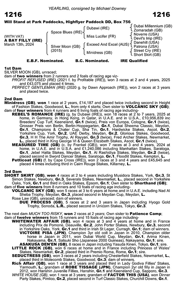 Silver Moon’s two progeny to date are both multiple winners with Profit Refused being Timeform rated 95. Silver Moon is a half-sister to none other than dual Breeders’ Cup and 7-time Group 1 winner Rebel’s Romance, and dual Group 1 winner Measured Time. Rebel's Romance added a further £680k to his career earnings - now totalling nearly £12m - having finished second in the Breeders' Cup turf at the beginning of November. It’s a high quality Godolphin pedigree through and through and she has serious potential resale value as a broodmare.